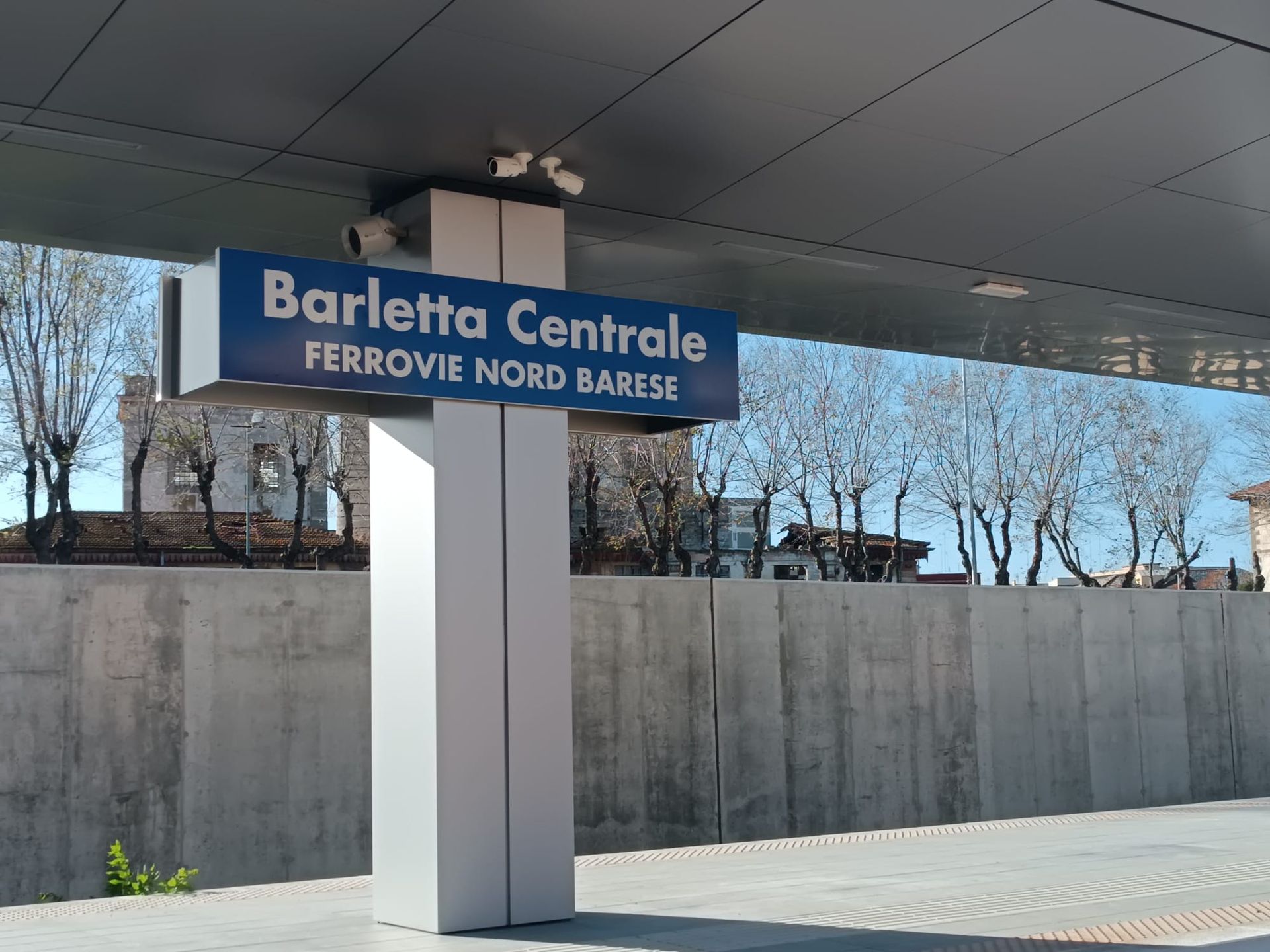 STAZIONE CENTRALE BARLETTA nuova banchina passeggeri FERROVIE NORD BARESE , rivestimento metallico in alluminio composito AL BOND silver e copertura metallica a giunto drenante MELA Drain 540 in alluminio silver.